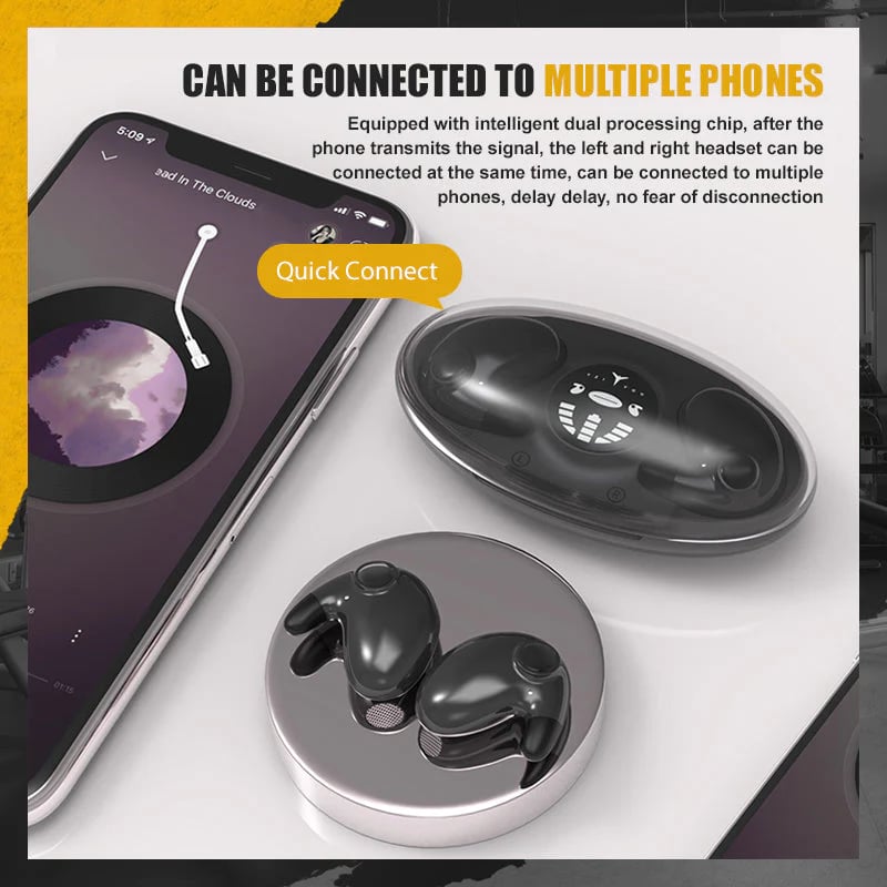 DESIGNED FOR SLEEPING Very mini and invisible earbuds body design, if you like to sleep with earbuds and don't like the foreign body sensation in your ears when sleeping on your side, then these sleep earplugs are the best for you. Sleep on your side without squeezing your ears, and the U-shaped rubber skin-friendly ear caps make the earphones fit your ears all night Simple Touch Operation This hidden earbuds for work is very easy to use. With a built-in microphone, you can easily switch between pausing music, answering calls, rejecting calls, or tracking music with the touch of a finger without taking out your phone. All things become easier and easier SENSE-FREE TO WEAR These are the lightest earbuds,size within 1cm/0.4in weighing only 0.08 oz per sleep earbud. It feels so light and natural, you hardly notice its presence