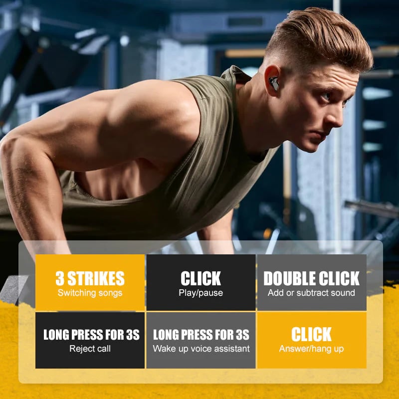 Invisible Design & Ergonomics Invisible earbuds are designed according to the shape of the ear, very mini design style, very light, fit the ear hook securely, suitable for long-term wear, will not cause discomfort to the ear.